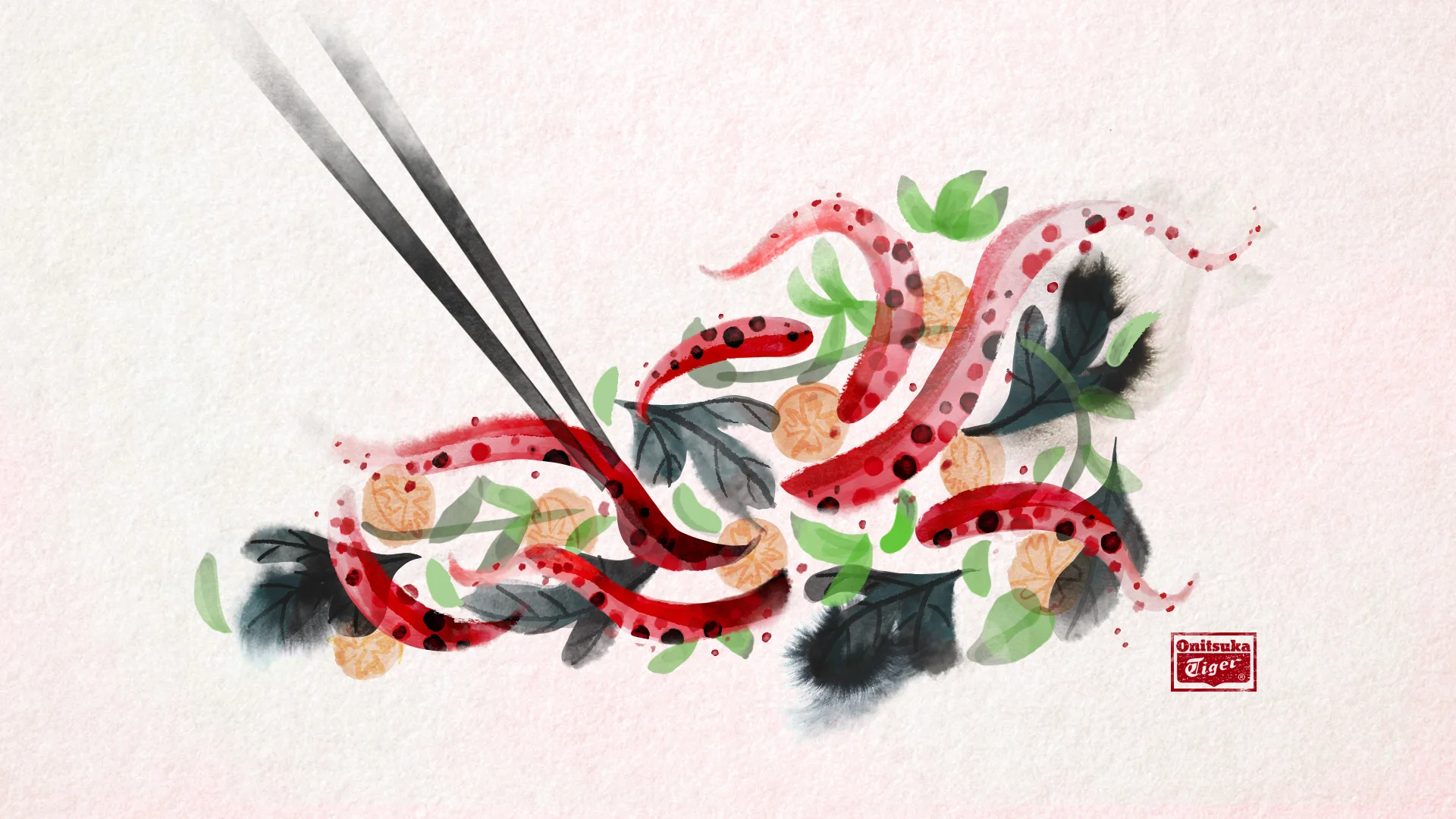 ASICS Ltd. shoes first began as Onitsuka Co. and was founded in Japan by Kihachiro Onitsuka. I used the Japanese watercolor style to drive its interesting origin story: Onitsuka stumbled upon inspiration while eating his octopus salad. Noticing how the octopus sucker had such strong grip, he realized that if he could mimic the shape of the sucker on his rubber shoe, he could create a basketball shoe that would achieve the kind of grip that was needed.